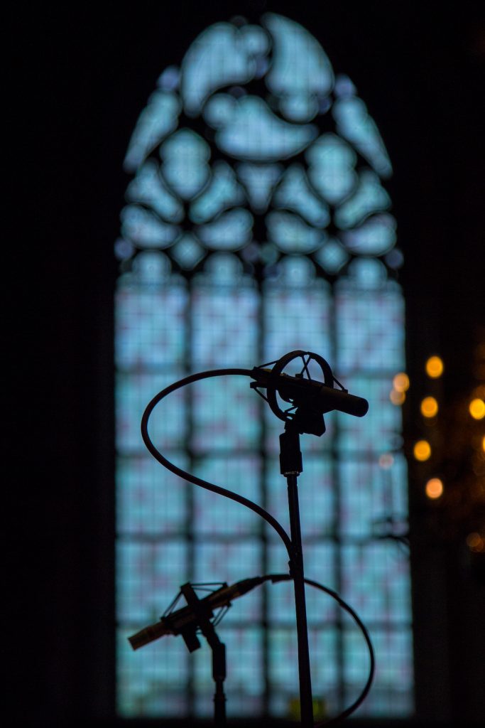 A binaural DSD recording approximates what a listener would hear at a performance of the music if they were sitting at that spot using an audio principle known as HRTF (Head Related Transfer Function). So, the only difference between stereo and binaural recordings is the microphone setup used. The intended result are recordings optimised for either spaced loudspeakers or headphones. For stereo recordings, the primary microphones are two mics typically spaced four to eight feet apart, matching the spacing of most home loudspeaker placements.